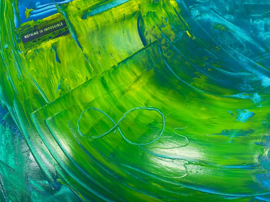 mixed media art, 40 x 50 cm. the sign infinite means also unclear position in chess notation.