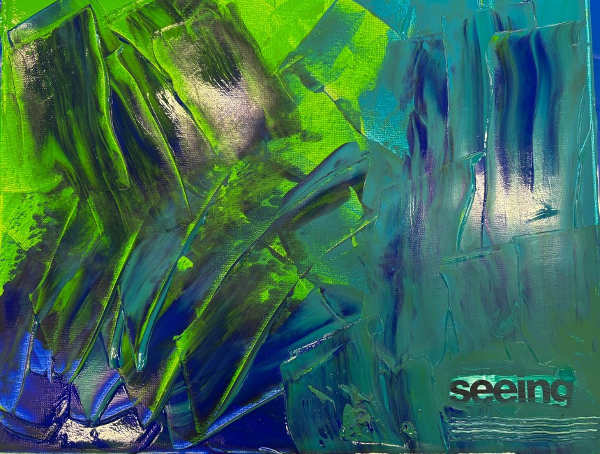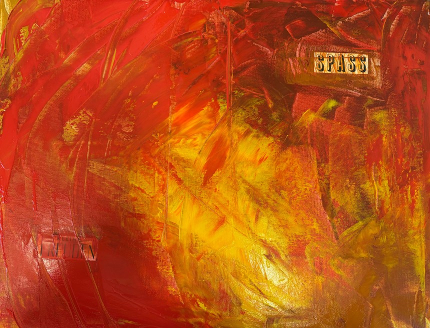 acryl on canvas, 40 x 50 cm. „Spass“ means fun in german. On the left corner there is the text „kleine Freuden“ (small pleasures) partly...
